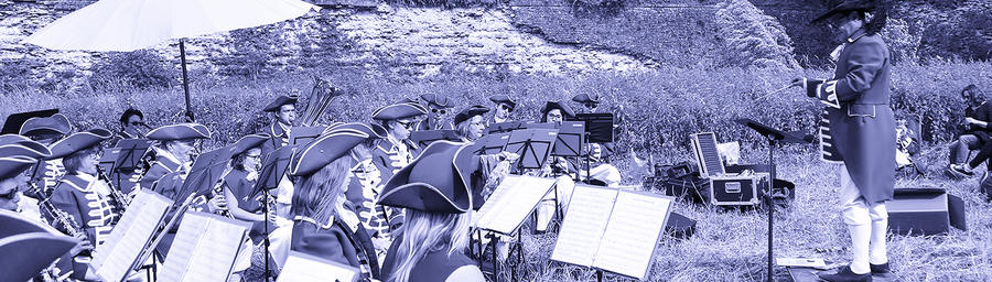 On approche de la fin de la randonnée artistique et l'harmonie de Beuvrages, dans des costumes d'époque - Louis XV -, joue son répertoire habituel agrémenté de pièces classiques ou encore de bandes originales de films. Visiblement, les trente-cinq musiciens prennent grand plaisir à le faire. Les notes de musique s’égrènent et passent partout, entre les arbres, entre les pierres. Certains descendent les regarder en bas des fortifications, d'autres marchent sur les hauteurs et écoutent ces musiques improbables monter jusqu'à eux. Installés dans l'herbe, les partitions posées, en costume bleu, panaché de leur chapeau rouge, ils accompagnent les randonneurs de passage. Une pause musicale bienvenue avant d'entamer le dernier tronçon.